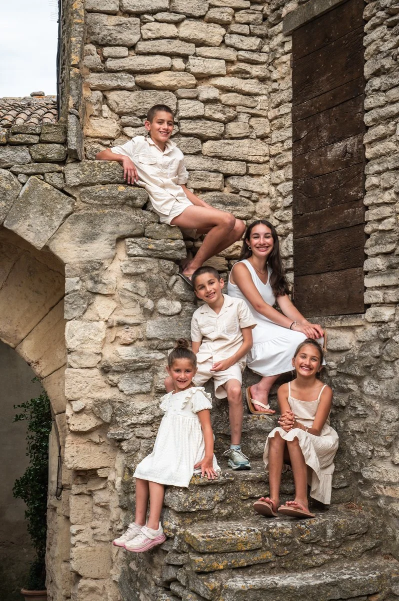 Provence is a superb location for stunning light and pristine landscapes. I am totally in love with this area and I enjoy creating unique and artful images that tell the story of your time here in Provence. With all of my collections, I take time to meet with you and your loved ones to get to know you before we start shooting. I feel it is very important that you are relaxed and feel comfortable during your photo session. I strive to make my photo sessions fun and memorable for everyone. I know of many lovely locations and I will help you choose the perfect location, whether it’s in a quaint village, chateau, ancient ruin, cafe, market, or the Provençal countryside.